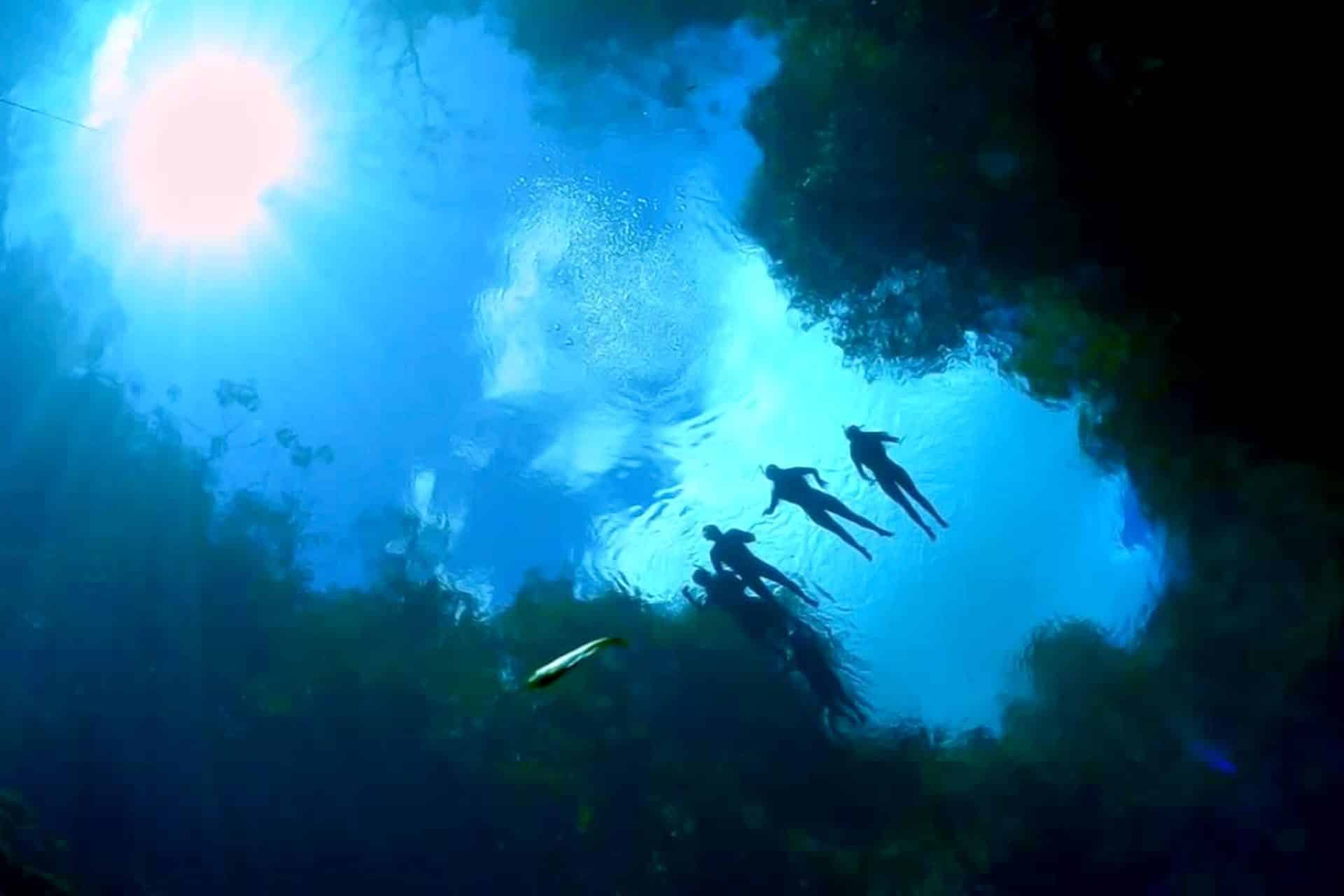 A aproximados oito metros de profundidade abrem-se dois poços, com cerca de dez metros de diâmetro, que descem verticalmente para mais de 240 metros de profundidade. E tudo isso pode ser visto de cima durante a flutuação.